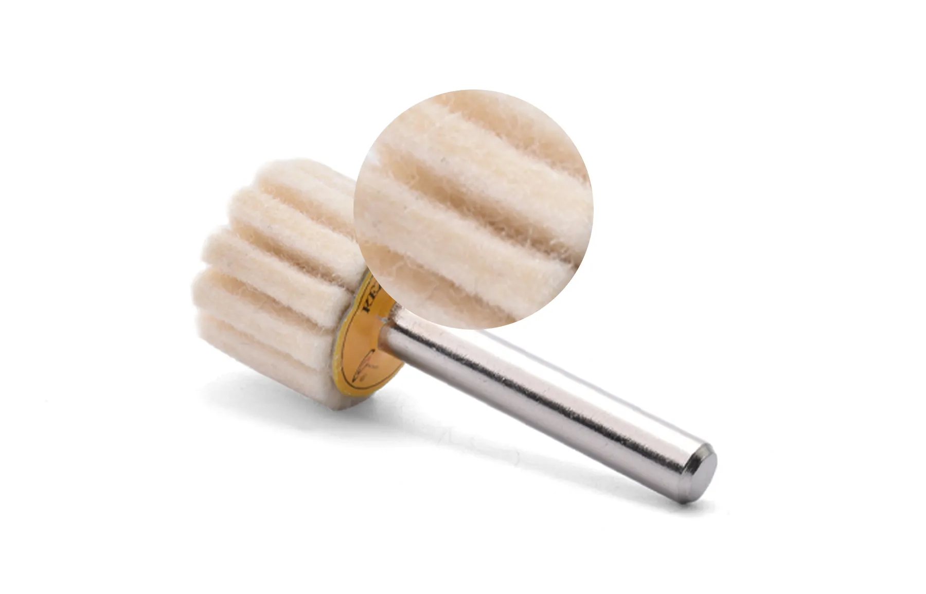 Felt Polishing Wheel With Shank 1-3/4 inch are used for pre-polishing and high-gloss polishing on small to medium-sized components. The hard felt polishing wheel structure is designed to fit the contours of the working surface and dissipates heat build-up.